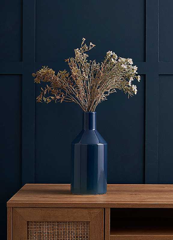 Inspired by classic mid-century design, the Bottle Shape Ceramic Vase brings a calming, elegant presence to your home. Crafted from smooth, high-quality ceramic, its graceful, tapered silhouette and rich, deep blue glaze create a timeless look. Perfect for a striking single stem or as a minimalist decorative object, this vase adds a pop of sophisticated colour and a sense of effortless style to any tabletop.Made from CeramicDimensions approx. 12.8 x 12.8 x 28.5 cm
