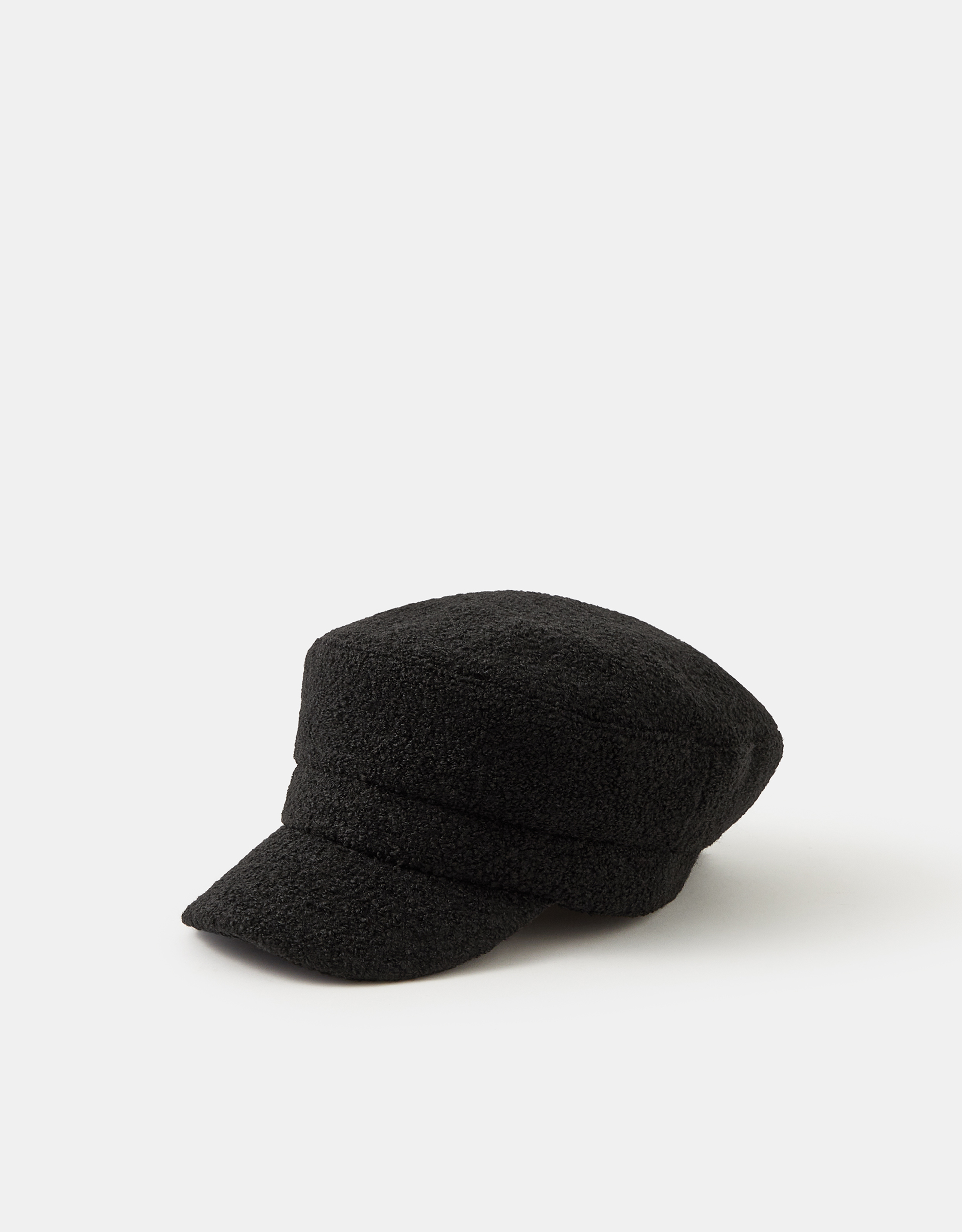 Designed with a trendy boucle finish, this classic baker boy hat will make a fun addition to your accessory collection. How will you style it? Black