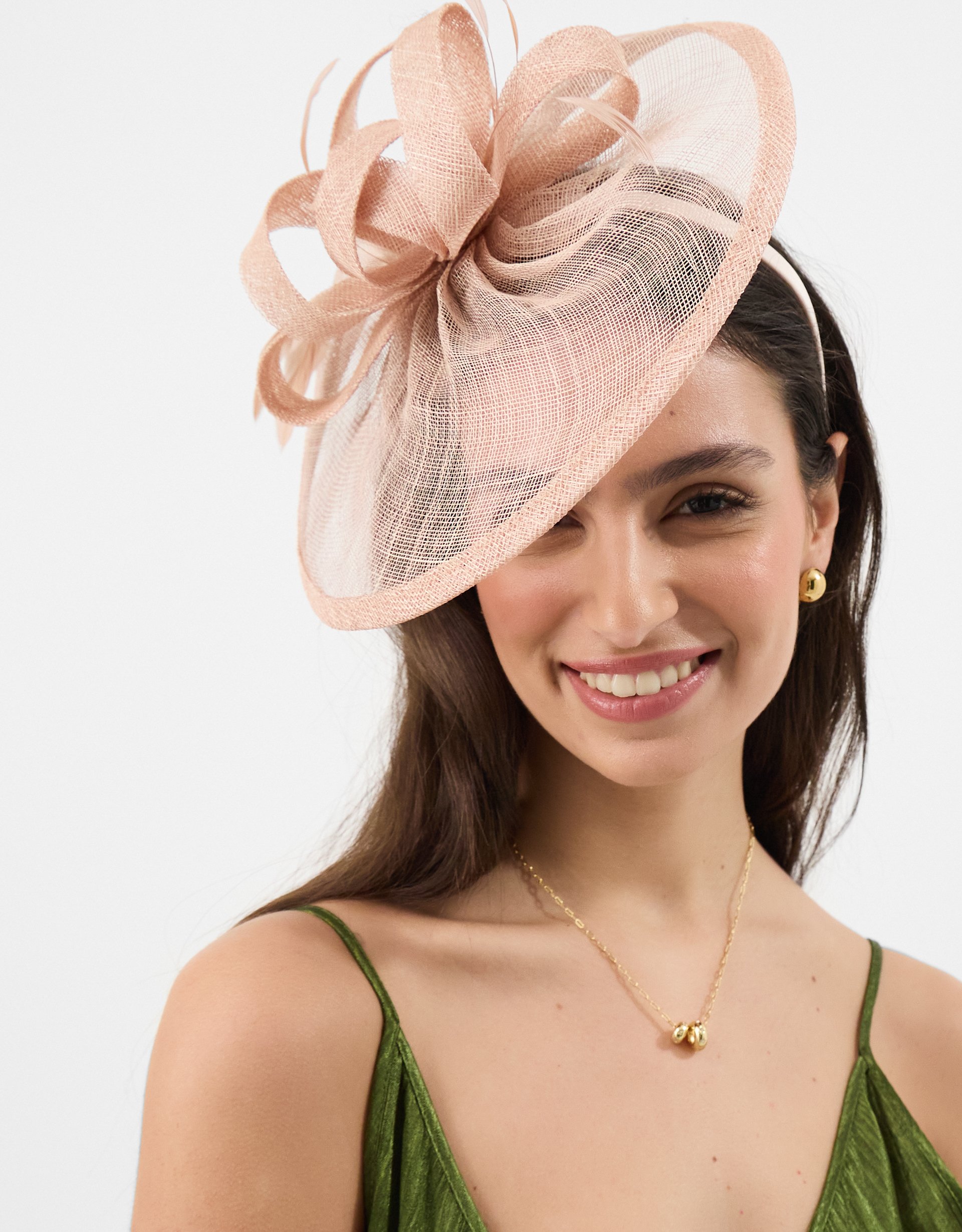 Bow Feather Disc Fascinator Light Pink, Size: 22cm - Accessorize Fashion Accessories