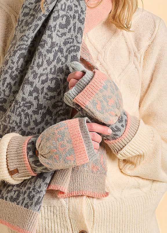 The Animax Gloves bring cosy versatility to your cold-weather look. With the option to wear as fingerless or mittens, they're crafted from ultra-soft fabric with a snug fit, acacia wood button detail, and a branded tab at the wrist.Wipe clean with damp clothDo not washDo not tumble dryDo not iron100% Polyester | warm fingerless gloves, leopard print gloves, cold weather gloves, wrist warmers, hand warming gloves, polyester gloves, soft womens gloves, casual gloves, womens animal print gloves, arm warmer gloves, convertible gloves mittens