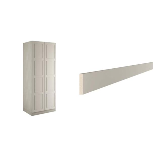 Bramham Taupe Grey Double Wardrobe with Single Rail Shelves 900 x 2260 x 608mm The Bramham taupe grey double wardrobe with single rail and shelves comes with MDF 4 panel shaker frontals in a luxurious super matt finish an urban oak cabinet and soft close hinges The flatpack quick build cabinet is delivered to a room of your choice The modular furniture can be used for freestanding purposes or joined together to achieve a built in look Everything is manufactured to the highest standard in the UK using FSC material with a 10 year manufacturer's guarantee Please note handles sold separately