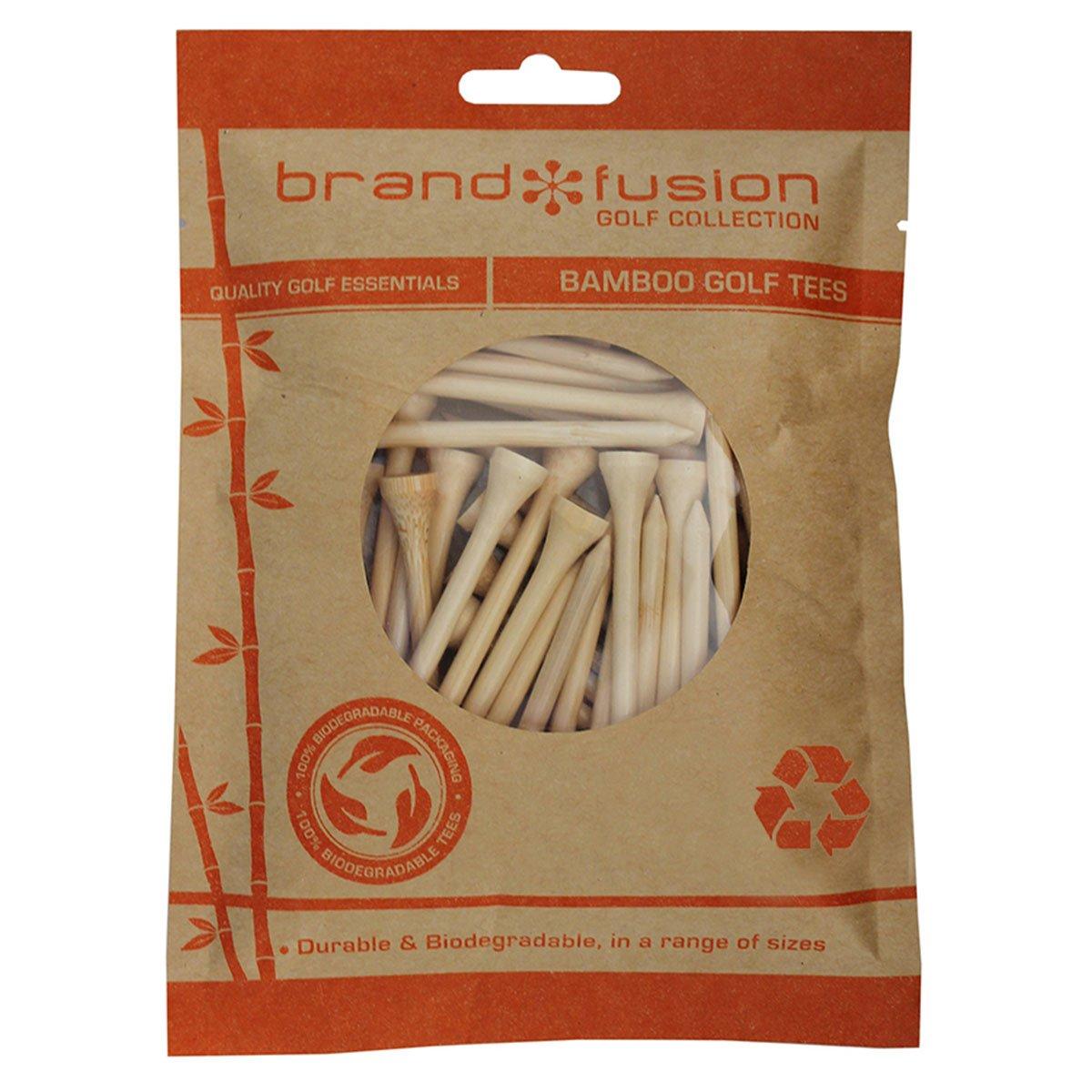 Brand Fusion Bamboo 47mm - 69mm Bumper Pack Golf TeesFeatures:EXTREMELY DURABLEFULLY BIODEGRADABLE BAMBOO TEESFULLY BIODEGRADABLE PACKAGINGRANGE OF HEIGHTS Bamboo golf tees are made with environmentally considerate material and are extremely durable for long-lasting performance. The pack contains 47mm and 69mm golf tees.
