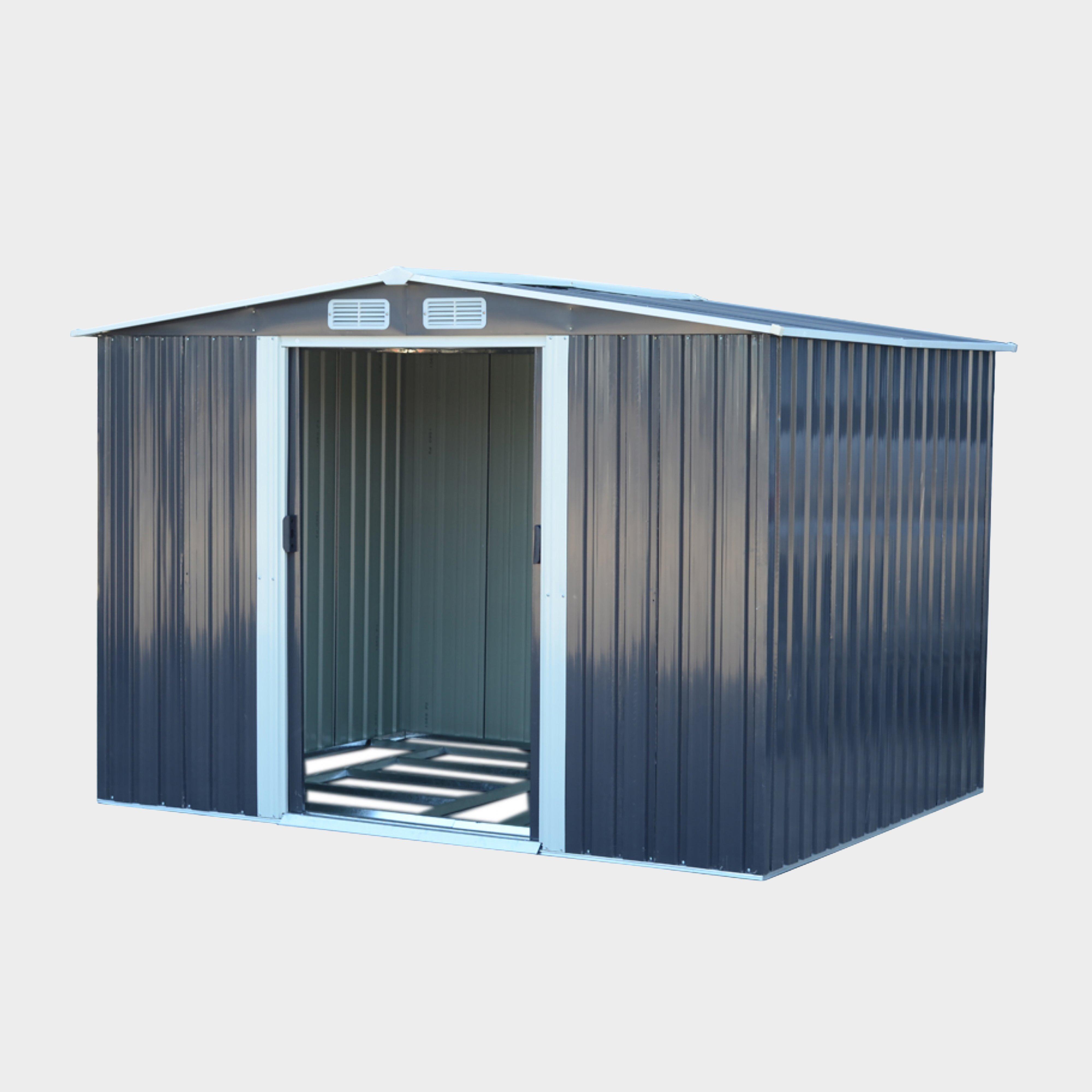 This durable outdoor storage shed provides ample space for storing gardening tools, outdoor equipment and DIY essentials. Constructed from high-quality coated metal, it offers reliable weather resistance throughout the year. The apex roof helps prevent water build-up, while the double sliding doors ensure easy access. Integrated vents improve airflow to keep the interior fresh and dry. Ideal for gardens, patios or allotments. Overall Dimensions: 257cm W x 312cm D x 178cm H >Bottom Dimensions: 248cm W x 302cm D Door Dimensions: 95cm W x 154cm H Product Type: Storage Shed Material: Galvanised Plate + Colourbond Steel PlateRoof Style: Apex Roof >Number of Doors: 2 Door Style: Sliding Doors Lockable: No Window Included: No Ventilation: Yes (4 vents) Floor Included: No Foundation Included: Yes Year-Round Use: Yes Assembly Required: Yes Bottom Area: 74,896cm² Package Contents: 1 x Storage Shed 1 x User Manual Package Specifications: Carton A — 167 x 57 x 10cm, 24kg Carton B — 166 x 50 x 7cm, 26.2kg Carton C — 139 x 50 x 7cm, 27.5kg Carton D — 166 x 22 x 22cm, 28.15kg Notes:-Delivered in multiple cartons, which may arrive separately. -Assembly by two people is recommended. -Wear gloves during assembly for safety. -Keep children and vulnerable individuals clear of the assembly area -Measurements may vary slightly due to manual measurement. -Colours may appear different depending on lighting and screen settings.