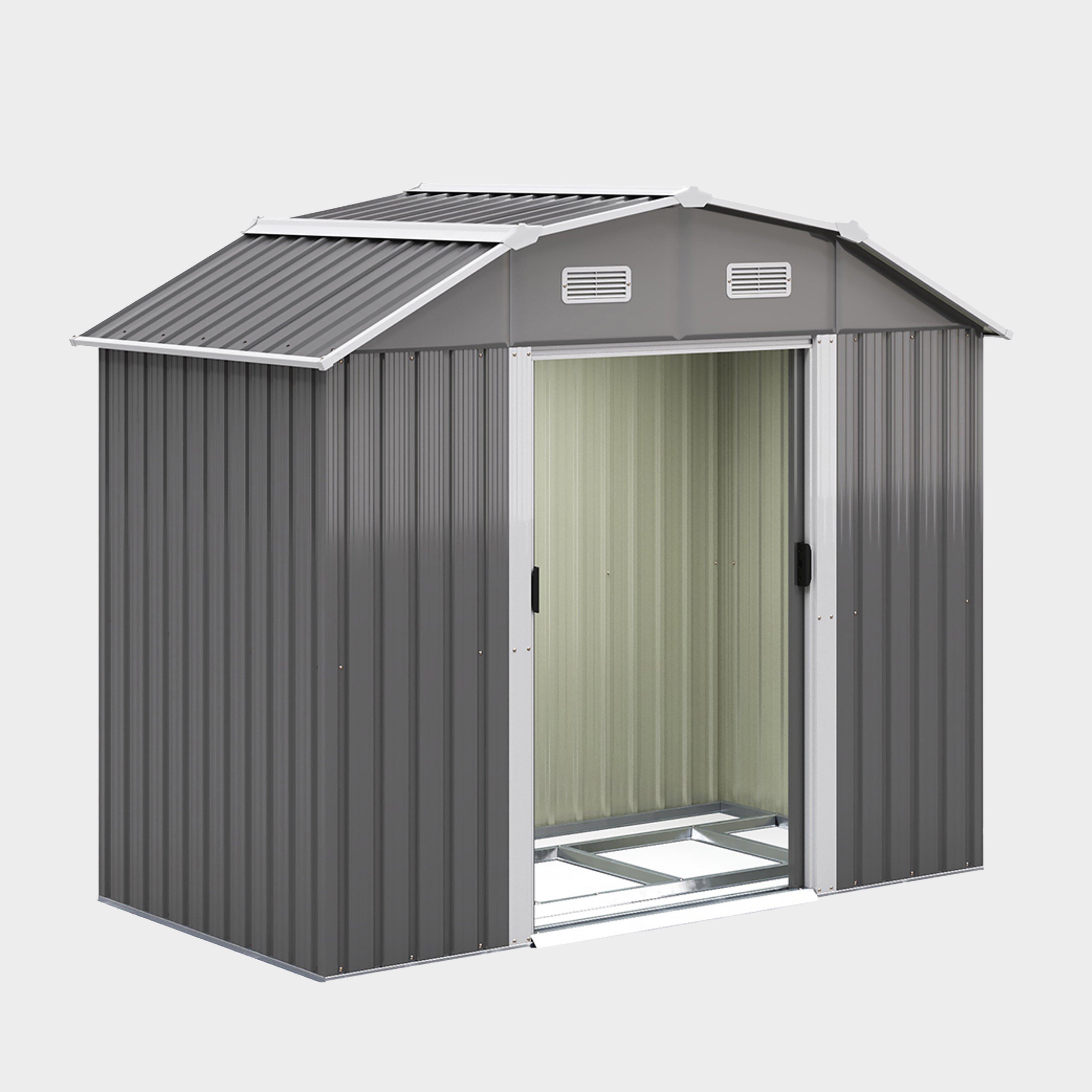 Our heavy-duty outdoor storage shed offers a reliable solution for protecting and organising large equipment and garden essentials. Integrated ventilation louvers promote airflow inside the shed, helping to prevent moisture build-up and keeping stored items dry. A sturdy foundation is included to keep your belongings elevated, protecting them from damp, pests and dirt. With its robust construction and generous interior space, this shed provides an ideal blend of security and practicality.>Built-in shelves offer extra storage for smaller items Spacious interior accommodates a wide range of larger equipment Constructed from heavy-duty galvanised metal for long-lasting durability Overall Dimensions: 236cm W x 131cm D x 199cm H Door Size: 95cm W x 154cm H Material: Zinc Steel Surface: Powder-coated Outdoor Use: Yes Windows Included: No Roof Style: Slope Foundation Included: Yes Ventilation Included: Yes Number of Doors: 2 Shelves Included: Yes Assembly Required: Yes Package Content: 1 x Storage Shed >Package Specifications: Carton A: 166 x 57 x 9cm, 36kg Carton B: 166 x 53 x 9cm, 34kg Note: -Pictures may vary due to monitor differences. -Please allow 1-3cm measurement variations.