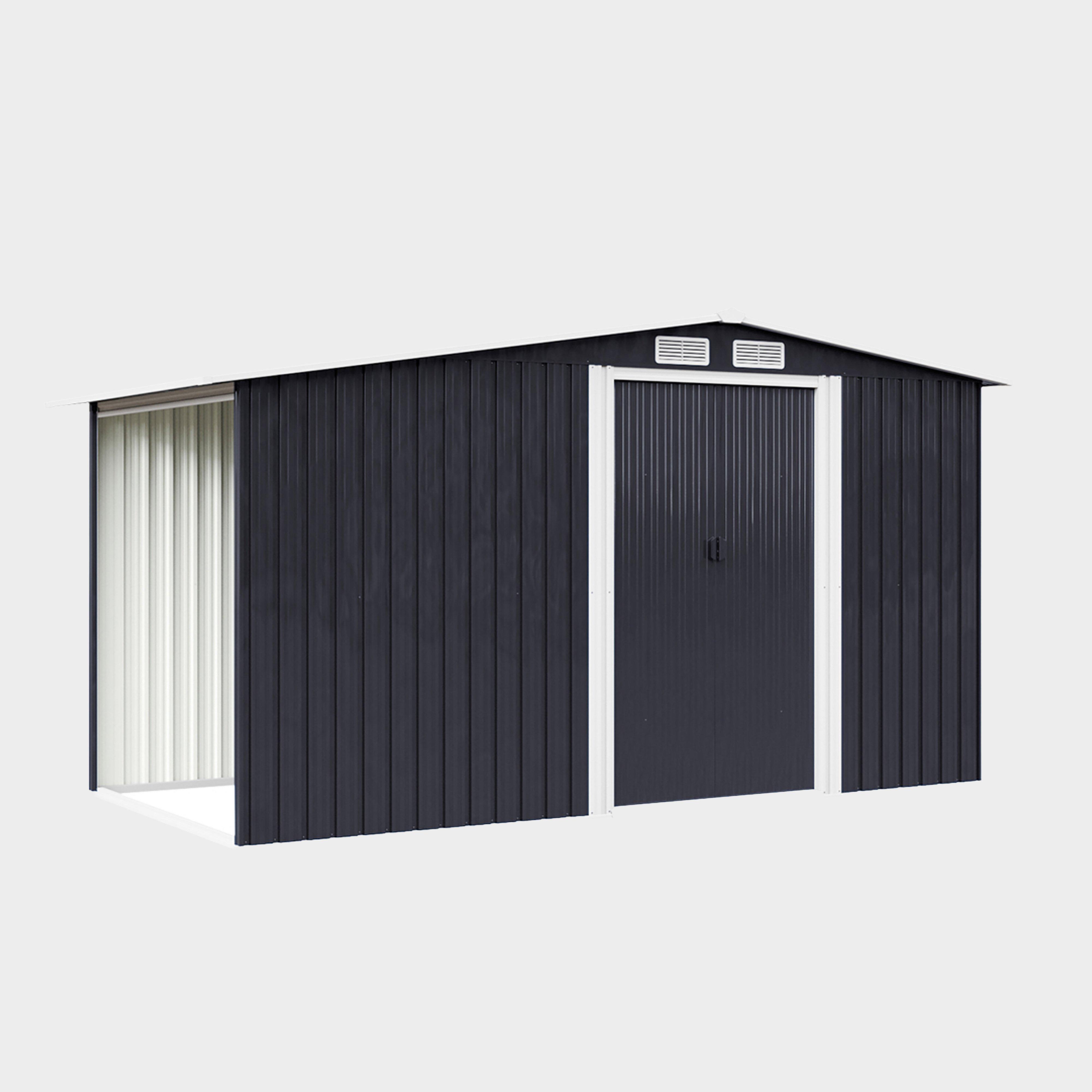Keep your garden tools and equipment neatly organised with this practical metal storage shed. Made entirely from quality steel, it offers reliable protection against the elements while providing generous space for tools, furniture, machinery, and outdoor essentials. The integrated open storage area is ideal for keeping logs accessible, while built-in ventilation shutters promote airflow and help reduce odours. A sturdy, functional solution for maintaining a tidy and efficient garden space. Dimensions: 329cm W x 207cm D x 178cm H(XL)Shed Type: Garden Shed Material: 0.25mm colour steel plate + 0.6mm galvanised plate Outdoor Use: Yes Number of Doors: 2 Number of Vents: 4 Floor Included: No Ventilation Included: Yes Lock Type: U-Lock (Not Included) Package Content: 1 x Metal Storage Shed 4 x Ground Nails Package Specifications: Carton A: 166 x 57 x 8cm, 26kg(XL) Carton B: 166 x 50 x 7cm, 27kg(XL) Carton C: 141 x 50 x 7cm, 26.5kg(XL) Carton D: 142 x 25 x 10cm, 12kg(XL)Notes: -No lock included. -Protect the shed from extreme weather by covering it when not in use. -Colour may vary slightly due to lighting or monitor settings. -Please allow 1-3cm difference due to manual measurement.