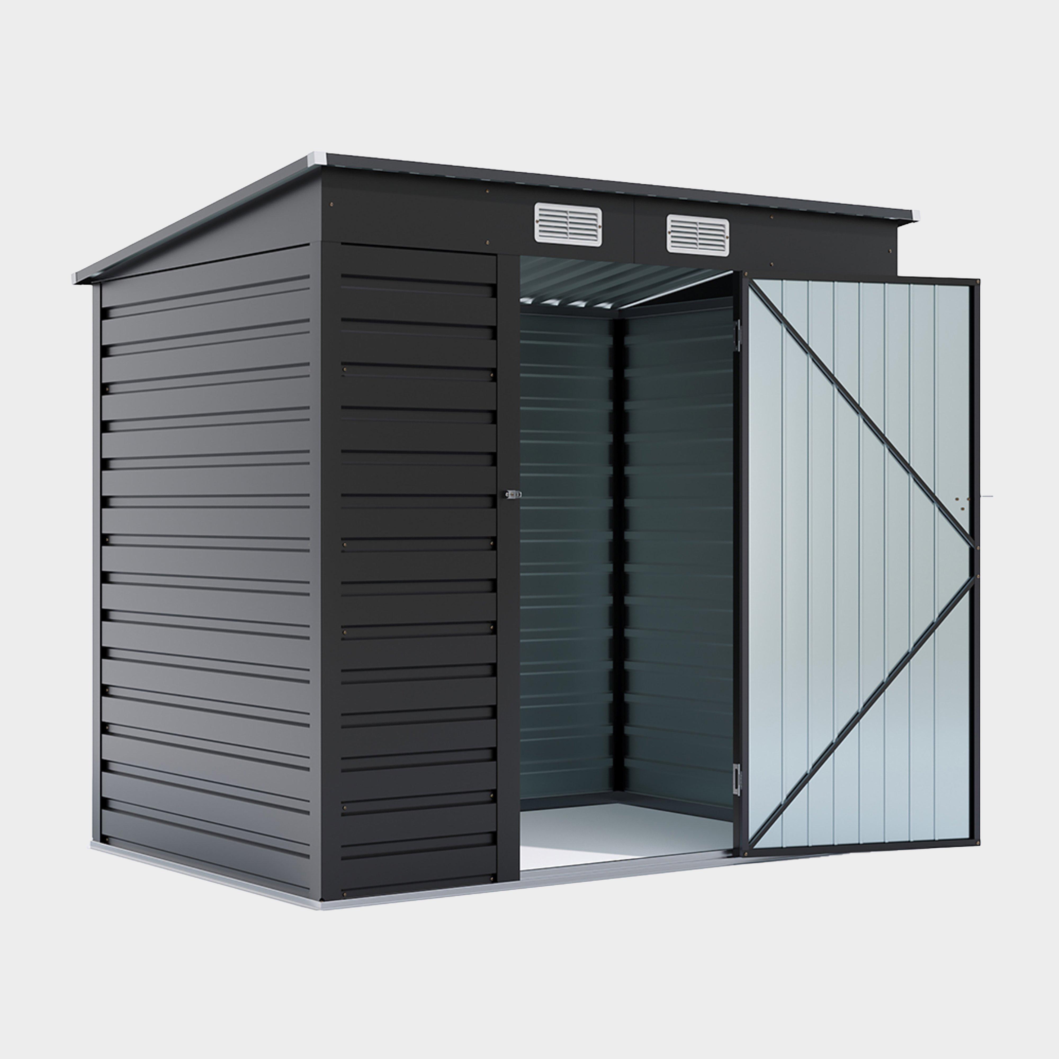 This charcoal black outdoor storage shed is an ideal solution for organizing your garden tools and outdoor supplies. Made from high-quality galvanized steel sheets, it is rust-resistant, maintenance-free, and built to withstand the elements. The sloped roof prevents rainwater accumulation, while the two built-in vents provide proper air circulation to keep the interior fresh. The lockable door adds security (lock not included), and the shed is easy to assemble with basic tools. Perfect for keeping your garden neat and organized.Overall Dimension: 191.2cm W x 122.5cm D x 183.5cm H(L)Material: Zinc SteelFloor Included: NoWindows Included: NoNumber of Doors: 1Door Style: LockableBuilt-in Shelving Included: NoVentilation Included: YesAssembly Required: YesLock Included: NoOverall Shape: RectanglePackage Specifications: Carton A: Package Dimensions (WxDxH): 173 x 53 x 9cm(L) Gross Weight: 27kg(L) Carton B: Package Dimensions (WxDxH): 129 x 53 x 11cm(L) Gross Weight: 31kg(L)Notes:-Despite efforts for accuracy, there may be some reasonable error due to manual measurement.-Actual product colours may vary due to monitor settings and lighting conditions.-The product is lockable, but a lock is not included.