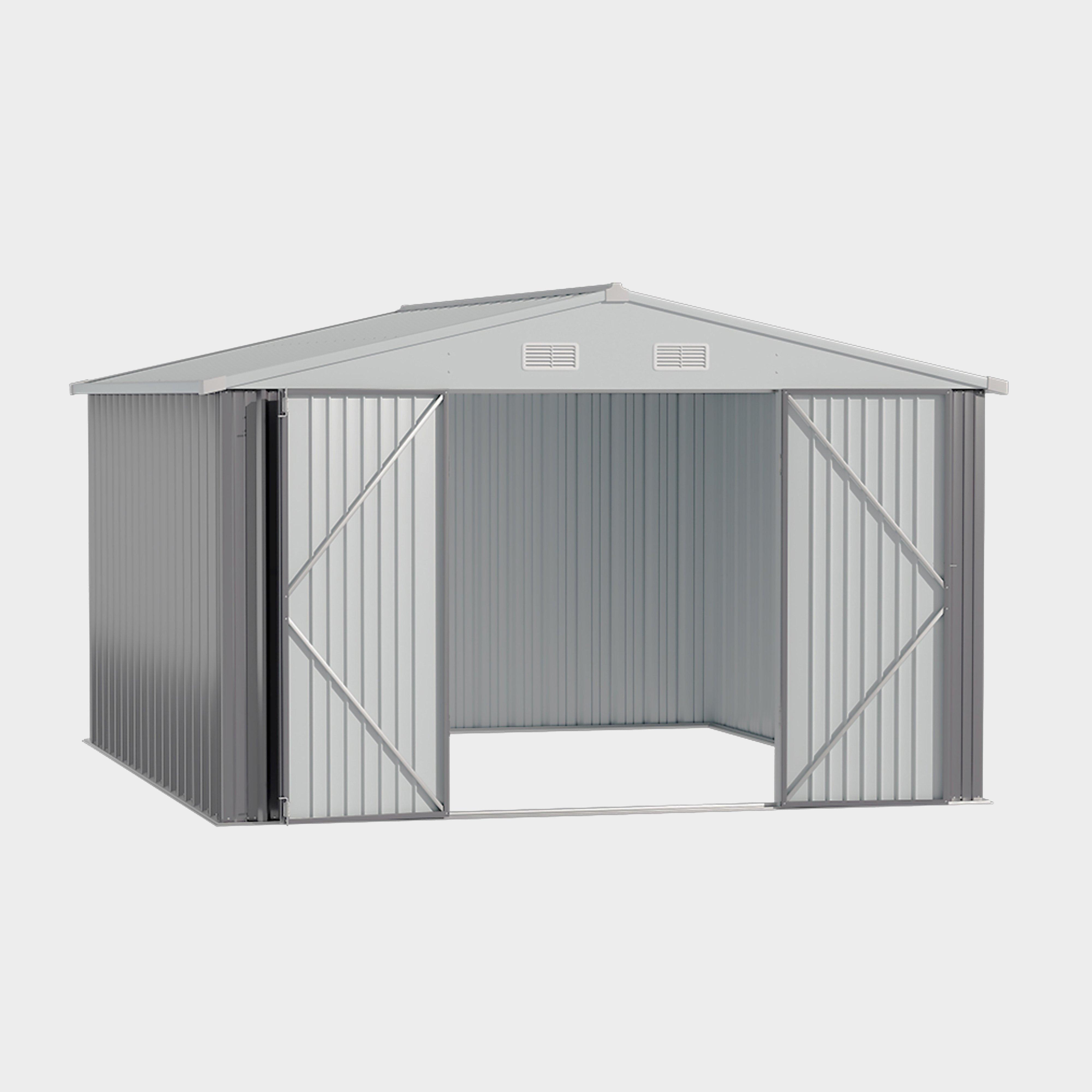 This Metal Storage Shed is an ideal solution for keeping your backyard neat and organised. Made from high-quality steel sheet with an anti-rust coating, it offers long-lasting durability and strong resistance to corrosion and all-weather conditions, requiring minimal maintenance. The generous interior provides ample room for a push lawn mower and other outdoor essentials while safeguarding them from UV, wind and rain. Ventilation louvers are built in to promote steady airflow and prevent dampness.Sloped roof design helps prevent rain and snow build-upAnti-corrosion galvanised steel ensures strength and durabilityMinimal maintenance required for long-term convenienceMultiple size options allow selection according to garden spaceOverall Dimensions: 317.6cm W x 305cm D x 203.6cm H(XXL)Door Dimensions: 150cm W x 164cm HMaterial: 0.25mm colour steel plate + 0.6mm galvanised plateOutdoor Use: YesNumber of Doors: 2Number of Vents: 4Floor Included: NoVentilation Included: YesLock Type: Padlock (Not Included)Package Content: 1 x Garden Storage Shed 4 x Ground NailsPackage Specifications: Carton A: 175 x 48 x 10cm, 36kg(XXL) Carton B: 172 x 48 x 7cm, 27kg(XXL) Carton C: 175 x 53 x 12cm, 35kg(XXL) Carton D: 185 x 22 x 15cm, 27kg(XXL)Note:Pictures may vary due to monitor differencesAllow 1-3cm measurement variations