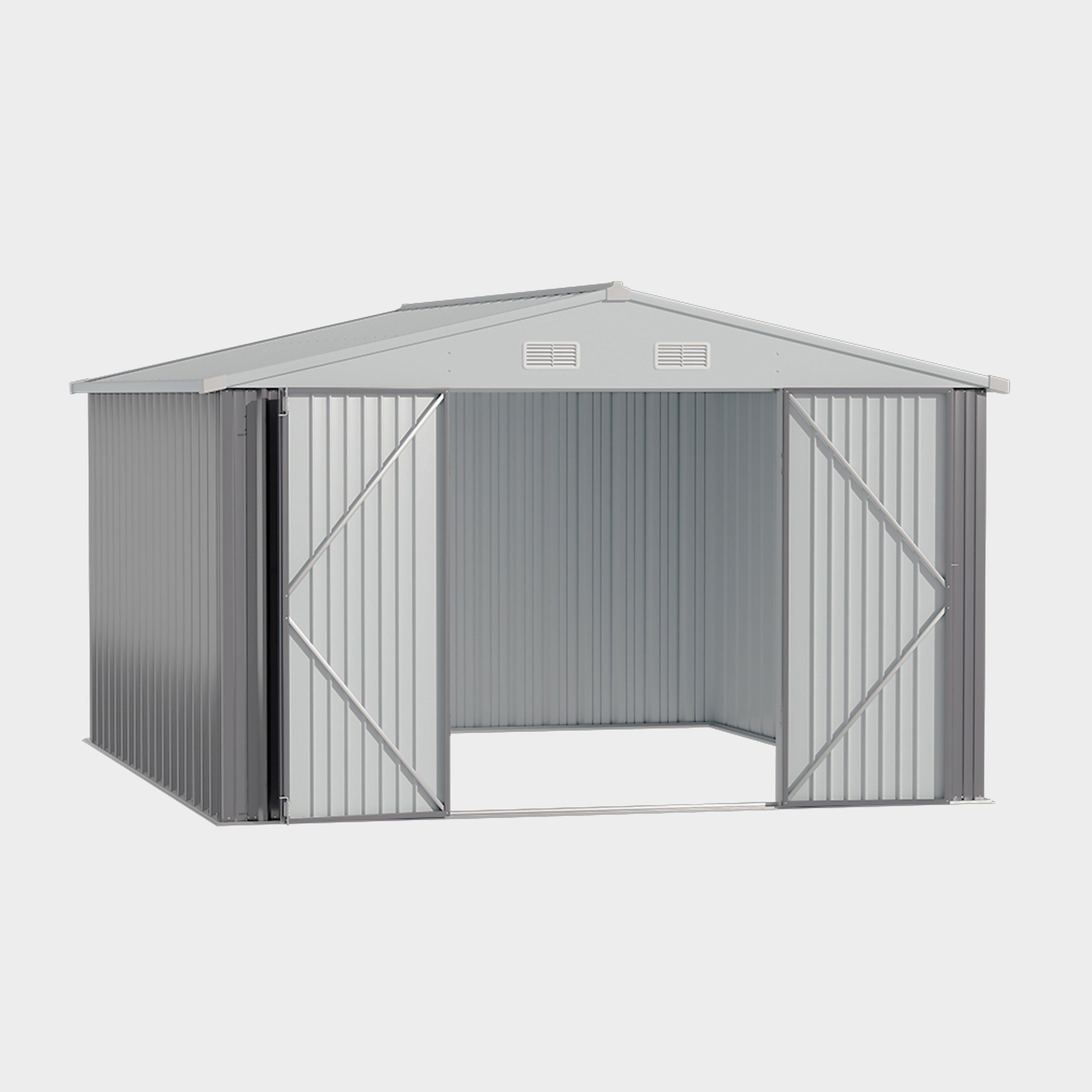 This Metal Storage Shed is an ideal solution for keeping your backyard neat and organised. Made from high-quality steel sheet with an anti-rust coating, it offers long-lasting durability and strong resistance to corrosion and all-weather conditions, requiring minimal maintenance. The generous interior provides ample room for a push lawn mower and other outdoor essentials while safeguarding them from UV, wind and rain. Ventilation louvers are built in to promote steady airflow and prevent dampness.Sloped roof design helps prevent rain and snow build-upAnti-corrosion galvanised steel ensures strength and durabilityMinimal maintenance required for long-term convenienceMultiple size options allow selection according to garden spaceOverall Dimensions: 317.6cm W x 364cm D x 203.6cm H(XXXL)Door Dimensions: 150cm W x 164cm HMaterial: 0.25mm colour steel plate + 0.6mm galvanised plateOutdoor Use: YesNumber of Doors: 2Number of Vents: 4Floor Included: NoVentilation Included: YesLock Type: Padlock (Not Included)Package Content: 1 x Garden Storage Shed 4 x Ground NailsPackage Specifications: Carton A: 175 x 48 x 10cm, 40kg(XXXL) Carton B: ;172 x 48 x 7cm, 30kg(XXXL) Carton C: 175 x 53 x 12cm, 40kg(XXXL) Carton D: 202 x 22 x 15cm, 30kg(XXXL)Note:Pictures may vary due to monitor differencesAllow 1-3cm measurement variations