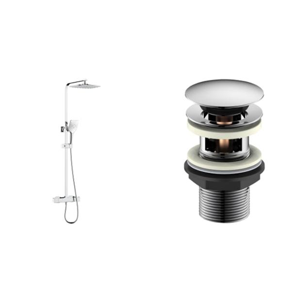 Bristan Craze 2 Thermostatic Rigid Riser Diverter Bar Mixer Shower Chrome + Wickes Klick Klack Basin Waste Kit Chrome