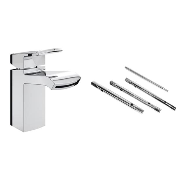 Bristan Descent Chrome Basin Mixer Tap with Clicker Waste + Rothenberger Monobloc Tap Spanner Set