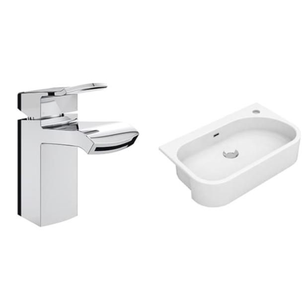 Bristan Descent Chrome Basin Mixer Tap with Clicker Waste + Wickes Siena 1 Tap Hole Semi Recessed Short Projection Basin 540mm