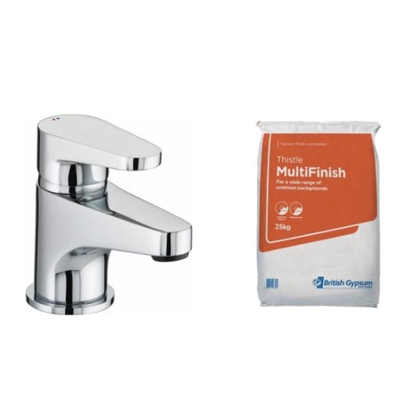Bristan Quest Chrome Basin Mixer Tap with Clicker Waste + British Gypsum Thistle Multi Finish Plaster 25kg