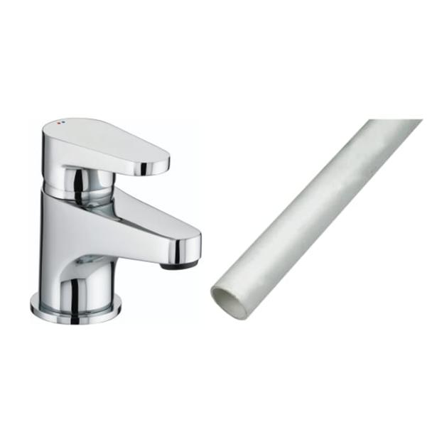 Bristan Quest Chrome Basin Mixer Tap with Clicker Waste + FloPlast WP01W White Push Fit Waste Pipe 32mm x 3m