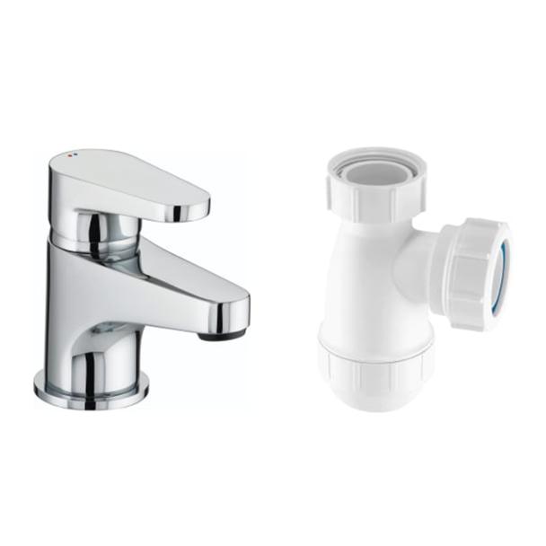 Bristan Quest Chrome Basin Mixer Tap with Clicker Waste + McAlpine E10 White Shallow Seal Bottle Trap 32mm