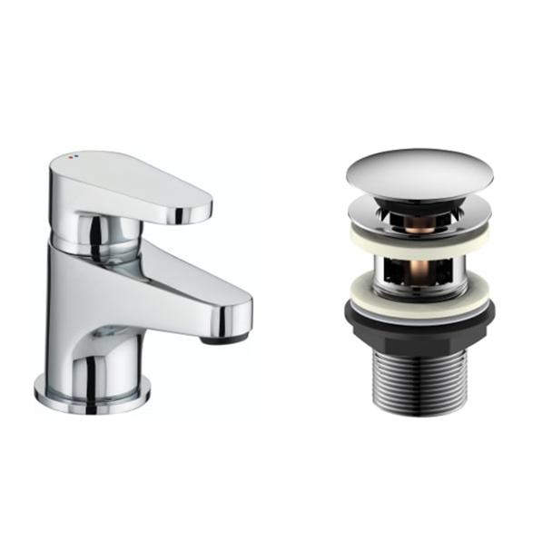 Bristan Quest Chrome Basin Mixer Tap with Clicker Waste + Wickes Klick Klack Basin Waste Kit Chrome