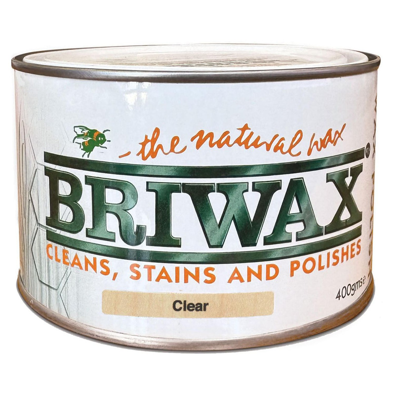 A high-quality wax polish based on natural waxes. It provides a simple, easy finishing system for unfinished or raw timber, or over French polished surfaces on occasional furniture in the home or workshop. * Available in multiple colours – Clear, Dark Oak, Antique Pine, Medium Brown, and Rustic Pine * Available in two sizes – 200g or 400g | Briwax Wax Polish 400g in Clear