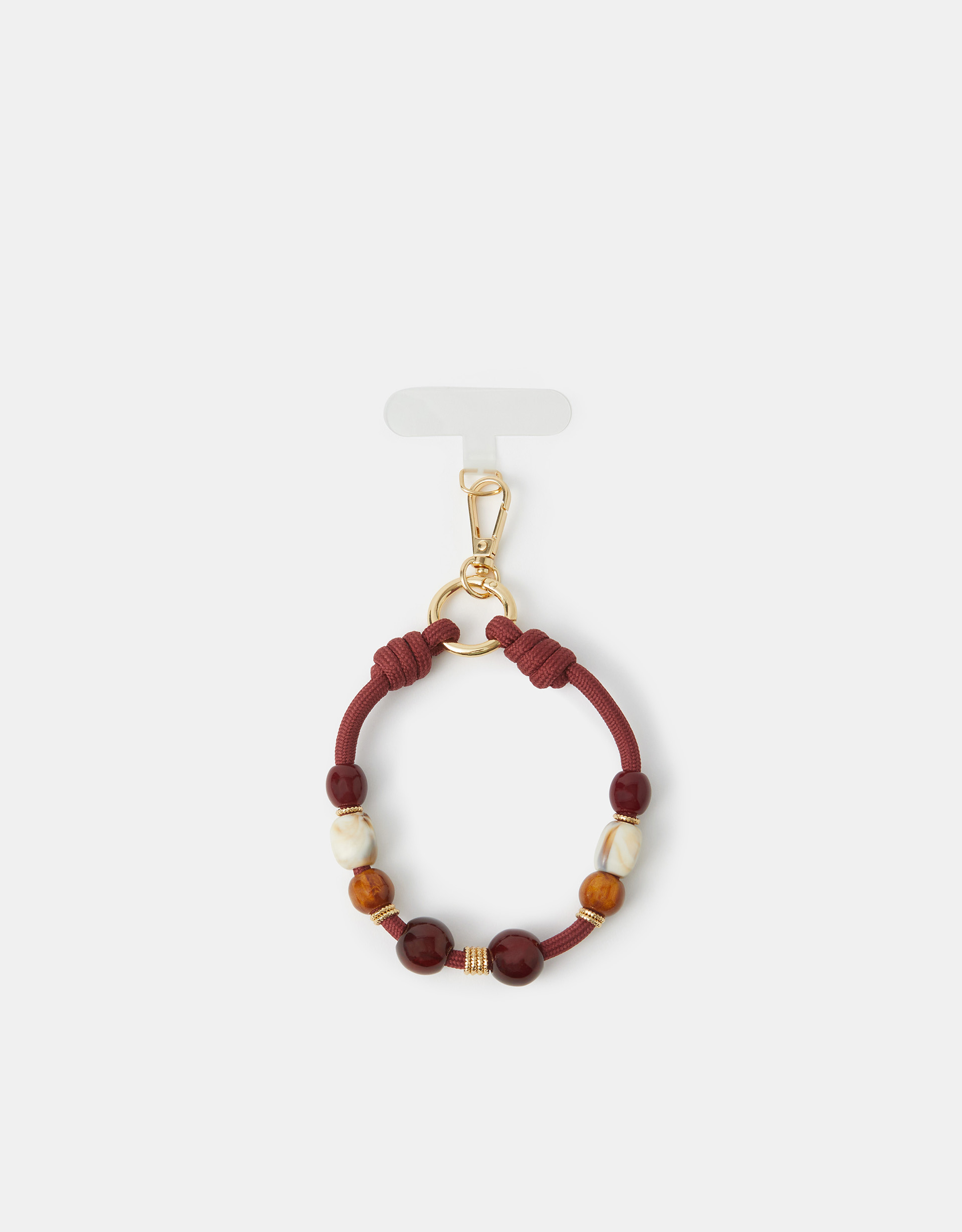 Brown Beaded Cord Phone Wrist Strap, Size: 50x28x40cm, Women's - Accessorize
