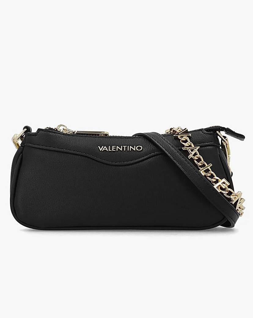 Valentino Bags Elly Black Logo Strap Shoulder Bag The Valentino Bags Elly Black Logo Strap Shoulder Bag is a versatile style. This New Season day to dark bag features a pebbled grain design with polished gold tone accents. The secure top zip fastener allows access to the single main compartment with handy inner zip and slot pockets. Carry by the logo chain strap on the shoulder or the detachable plain cross-body strap. Signature Valentino Bags branding completes the design. Technical information: Pebbled Grain, Gold Tone Hardware, Top Zip Fastening, Single Main Compartment, Zip & Slot Pocket, Detachable Logo Chain Strap, Detachable Plain Strap, Valentino Bags Branding, Includes Dust Bag Dimensions: L20 x H10 x D3.5 CM