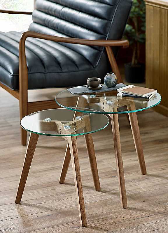 Add a touch of modern elegance to your home with the Bryant Nest of 2 Tables. The solid oak base with a unique 3-leg tripod frame offers sturdy support while adding warmth and natural charm to any room. The clear, circular tempered glass tops create a sleek, minimalist look that complements any decor style. Perfect for small spaces or as an accent to larger furniture, these tables can be stacked together or placed apart for versatile use. Minimal assembly is required, making it an easy and stylish addition to your home.Dimensions H44 x W50 x D50cmMinimal assembly requiredWood and glass12 month warranty includedFlat PackedPlease remember to measure your available space before ordering. If using on an un-carpeted floor we recommend rubber or felt protection pads be used under the legs to avoid damage to your floors.