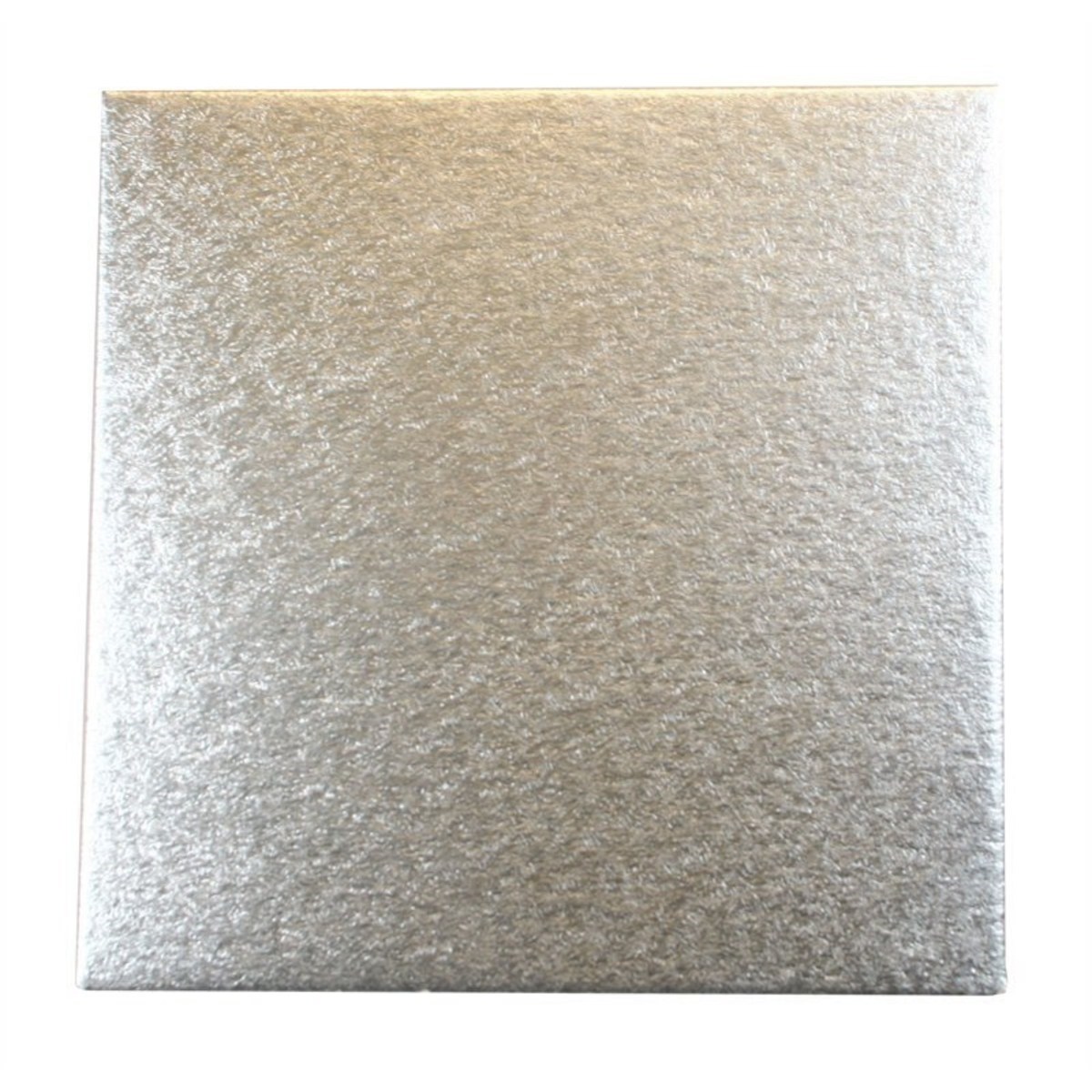 This bulk pack of 14” Double Thick Square Silver Cut Edge Cake Cards is ideal for presenting your single tier or stacked celebration cakes upon.