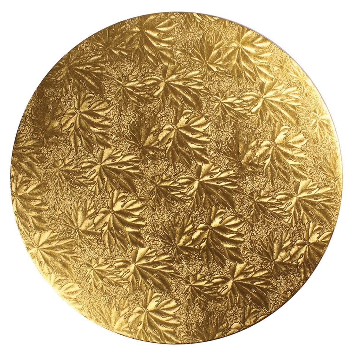 This bulk pack of 10" round double thick gold cake cards is ideal for presenting your celebration cakes upon. They have a maple leaf foil design and come in a pack of 25. If you only need one or two then they are also available individually (PTCPDBLTHICKROUND)