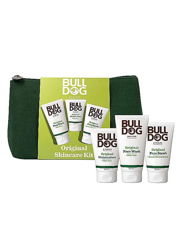 At Bulldog, we believe in making products for men that unlock the true potential of natural origin ingredients. Our Original Skincare Kit contains three of our best selling skincare products designed to help you look and feel your best. Kit Includes: -Original Moisturiser 100ml - Original Face Wash 150ml - Original Face Scrub 125ml - Washbag Directions: - Original Face Scrub - Wet face with warm water. Massage a small amount of face scrub gently into the skin and rinse well. - Original Face Wash - Lather up on wet skin and rinse. - Original Moisturiser - Use morning and night. Apply evenly to face and neck after cleansing. Bulldog
