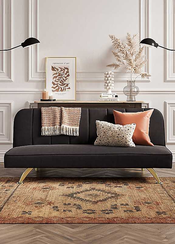 This modern sofa bed offers the perfect solution for relaxation and functionality in contemporary living spaces. It effortlessly complements modern d©cor while providing the convenience of a comfortable sleeping option for guests. Its dual-purpose design maximizes space without compromising on aesthetics, making it an ideal choice for those who value both style and practicality in their furniture. Available in plush Black velvet or luxurious Ivory boucle this piece effortlessly combines comfort, style, and functionality to elevate any living area.Weight of product: 30kgSuggested number of people for assembly: 1/2Tool kit included: YesSelf-AssemblyManufacturer's 1 year guaranteeProduct Care: Wipe clean only, avoid household cleaners/abrasivesSpecifications Material: Ivory Boucle, Black Velvet, MetalDimensions approx. 76H x 180W x 85D cmPlease remember to measure your available space before ordering. If using on an un-carpeted floor we recommend rubber or felt protection pads be used under the legs to avoid damage to your floors. | contemporary sleeper sofa, modern sleeper sofa, contemporary sofa bed, comfortable sofa bed, comfortable sleeper sofa, convertible sofa bed, folding sofa bed