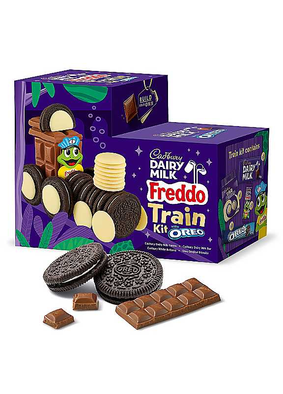 A deliciously fun gift to make your own Cadbury Dairy Milk Train Kit. A novelty train shaped gift box which includes all the chocolate and sweet components to construct your chocolate train. Self assembly kit Includes Cadbury Dairy Milk, Oreo biscuits, Freddo and white chocolate buttons-everything you need to build your own train. Step by step instructions on how to make the train are printed on the train gift box. 1 x Cadbury Dairy Milk Bars 110g 1 x Freddo Bar 18g 1 x Cadbury White Chocolate Buttons Bag 100g 1 x Original Oreo Biscuits Roll 154g Warning: Not suitable for young children adult supervision required. Have fun and share the experience of building a chocolate and biscuit train!For ingredients information click here
