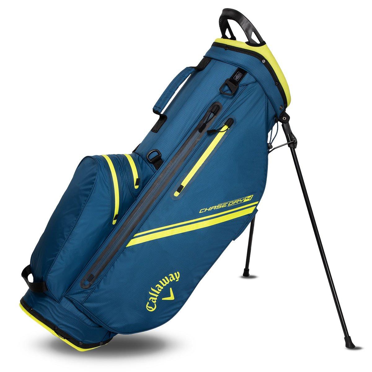 Callaway Chase Dry Golf Stand Bag Key Features - 4-Way Dividers7 Pockets3K Waterproof FabricWaterproof ZipsWeight: 2.0kgThe stylish CallawayChase Dry stand bag provides ample storage and organisation, made with 3K waterproof fabric for better protection out on the golf course.TOP LAYOUTThe sleek and stylish Callaway Golf Chase stand bag is ready for every round with a 4-way divider system for club organisation, complete with an integrated grab handle for effortless manoeuvrability.ADDITIONALThe bag is super sleek and lightweight, with dual straps and automatic stand functionality for ease of use. Complete with a towel ring and an umbrella holder, plus updated Callaway Golf authentic branding.
