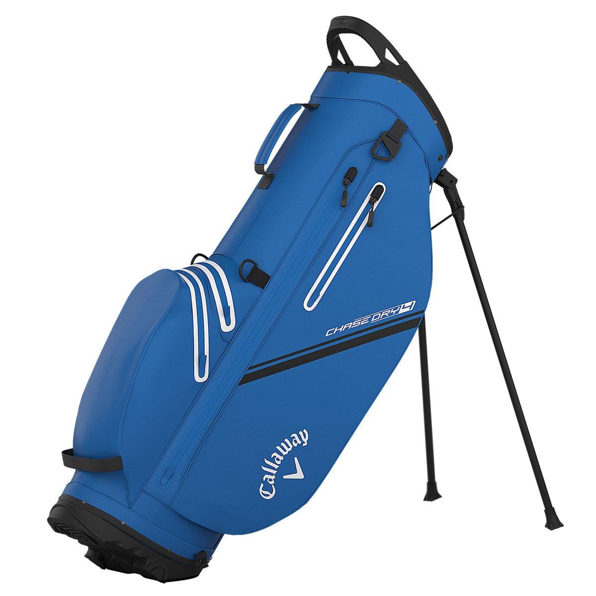 Callaway Chase Dry Golf Stand Bag Features : 4-WAY DIVIDERS7 POCKETS3K WATERPROOF FABRIC WITH WATERPROOF ZIPSWEIGHT: 2.0KGThe stylish new Callaway Golf Chase Dry stand bag provides ample storage and organisation, made with 3K waterproof fabric for better protection out on the golf course.Code : 448348Top LayoutThe sleek and stylish Callaway Golf Chase stand bag is ready for every round with a 4-way divider system for club organisation, complete with an integrated grab handle for effortless manoeuvrability.AdditionalThe bag is super sleek and lightweight, with dual straps and automatic stand functionality for easy of use. Complete with a towel ring and an umbrella holder, plus updated Callaway Golf authentic branding.