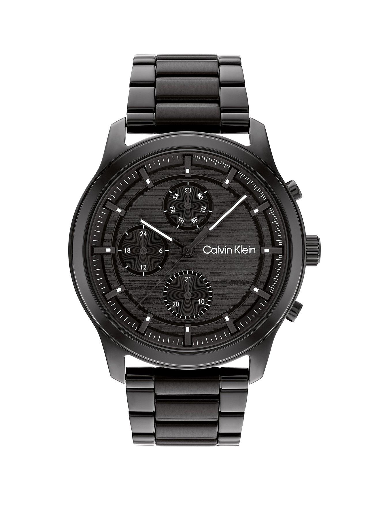 Calvin Klein Gents Black IP Bracelet Watch - effortless style at the flick of a wrist. ThisCalvin Klein Men's black IP watch featuresa black IP brushed dial and is handsomely finished with a black stainless steel bracelet. Boasting multi-function movement, this sleek and masculine timepiece is designed to keep up with you, every step of the way. The black colour block design makes it perfect for any occasion or look - from the boardroom to the dancefloor. The perfect wingman. 24Hr Display: N Case Diameter (in cm): 4.4 Case height (in cm): 1 Case Shape: Round Glass: Mineral Movement: JapaneseQuartz(battery) Strap Material: Stainless Steel Water Resistant: Y