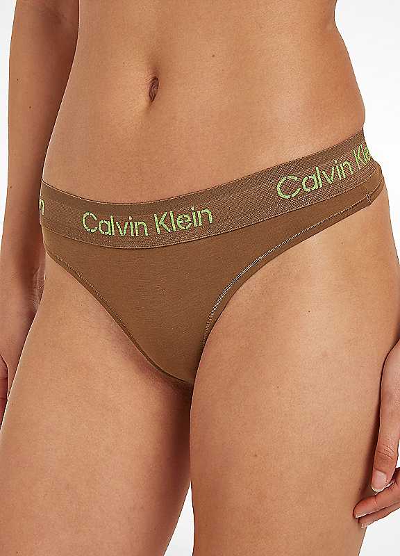 Introducing the Calvin Klein Thong - the perfect addition to any woman's underwear collection. This must-have piece is crafted from a luxurious Cotton Mix, ensuring both softness and durability. The Womens Thong features an Elastic cotton blend for a body-hugging fit that flatters your curves. The elastic waistband showcases the iconic CK logo, adding a touch of sophistication to this sporty design. With its ultimate comfort and sleek design, the Calvin Klein Thong is the ideal choice for those who want to feel confident and stylish all day long.Brand: Calvin KleinMachine wash53% Cotton, 35% Lyocell, 12% Elastane