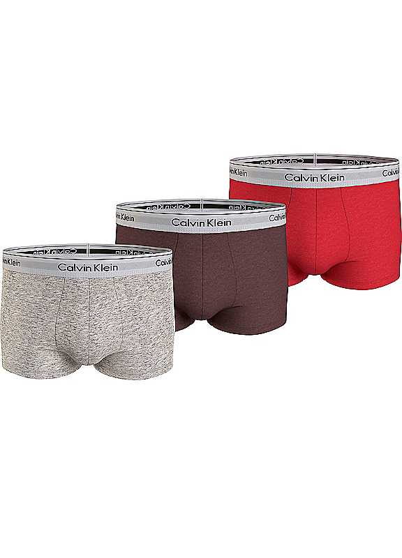 Calvin Klein Pack of 3 Trunks - Grey/Mahogany/Rouge - Size 3XL