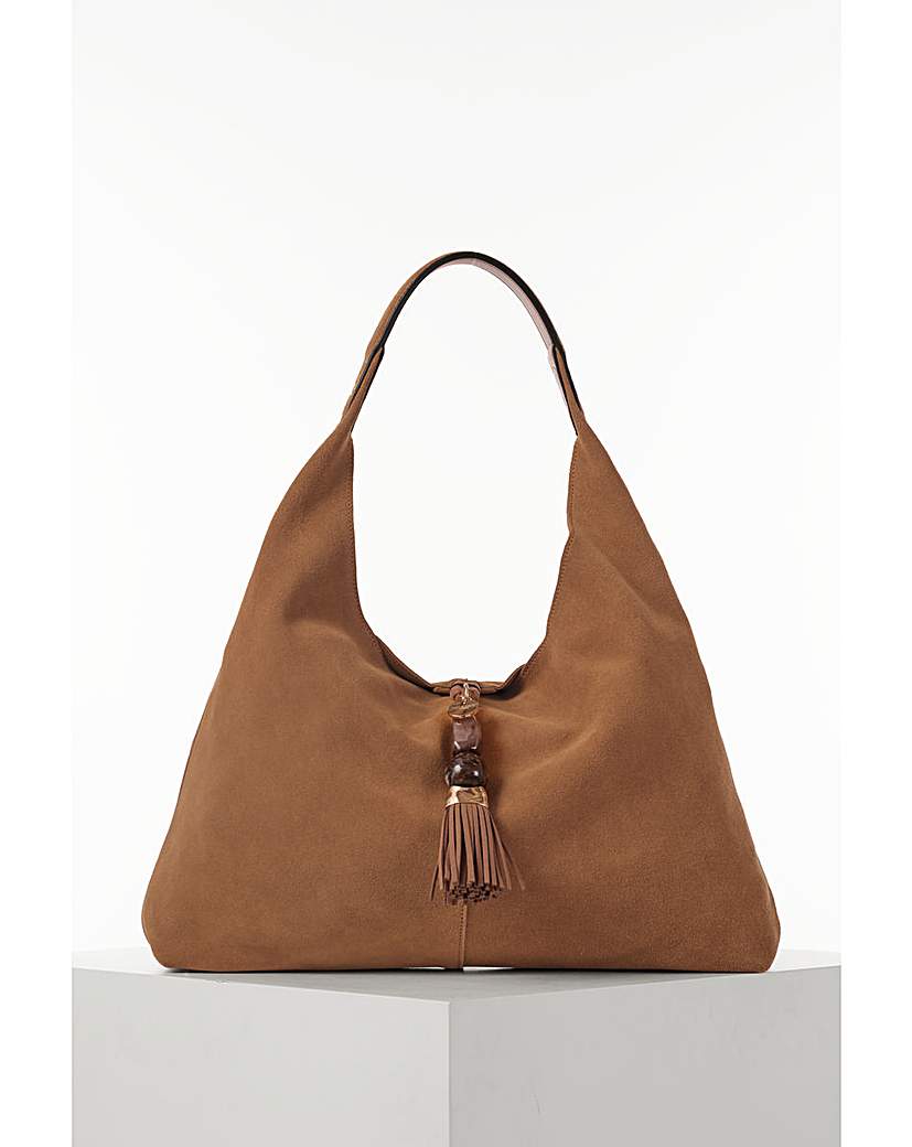 Luella Grey Pandora Camel Suede Hobo Soft and sumptuous, our Pandora Hobo Bag is crafted from luxurious suede with a relaxed, oversized silhouette. Finished with our new Mayfair Tassel adorned with resin beads and complete with a detachable inner pouch, she's the ultimate boho-luxe bag for everyday style. She comes with her own dustbag to keep her safe whilst not in use. Outer: 80% Leather + 20% Polyurethane. Lining: 100% Polyester. H: 27cm , W: 42cm , D: 10cm, Shoulder Strap Drop 29cm