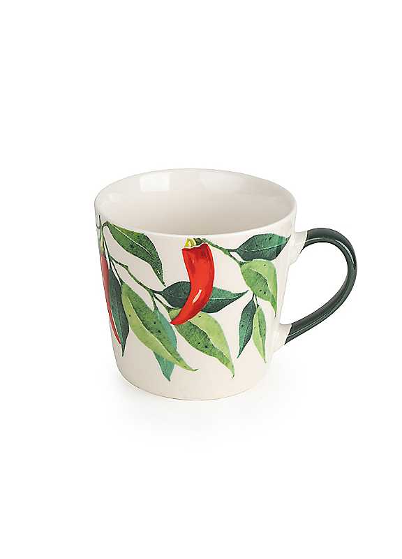 Start your day with a little heat and a lot of style with these wide conical mugs, featuring a playful chilli pepper design on a warm cream background. Generously sized shape and comfortable handle, it's perfect for sipping your favourite coffee, tea, or hot chocolate. Generously size shape Perfect for those favourite drinks Eye catching design Base stamp - dishwasher & microwave oven safe Wash before first use Dimensions approx. 9 x 13 x 10 cm