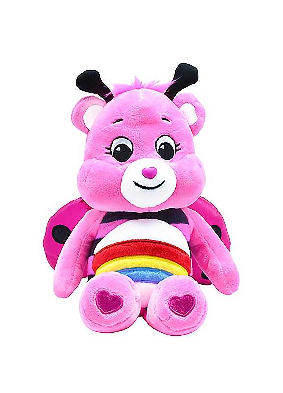 Each 9-inch Bean Plush Care Bear features vibrant new designs, soft huggable material, unique Belly Badge with two heart-shaped lollipops, perfect for adventures, and suitable for ages 4+.4+ years