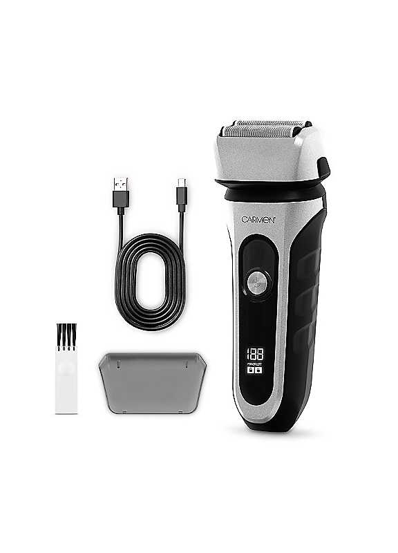 Carmen's Signature Foil Shaver delivers superior shaving performance to enhance your grooming routine. Three independent foils provide a closer and smoother shave, effortlessly tackling even the finest hair. It can easily be used for shaving sensitive areas or thicker beards, ensuring a comfortable shave without irritation. With a simple flick of a switch, the precision trimmer will pop up at the back of the shaver so you can create perfectly refined lines and smooth out stubble with minimal effort. The advanced, rechargeable battery provides up to 60 minutes of cordless runtime, for a great shave without restrictions. For quick and easy maintenance, simply rinse the head under water and finish with the included cleaning brush. Thanks to IPX7 waterproof technology, you can easily use the shaver in the shower with gel or foam without damaging it, allowing you to refine your grooming routine in no time. Perfectly designed to fit in the palm of your hand for a comfortable and efficient trim, the shaver offers easy portability and comfort.FLOATING STAINLESS STEEL MESH PLATES - Three independent foils adjust to the contours of your face & effortlessly pivot to provide an exceptionally close & smooth shave, catching even the finest hair to leave your face feeling comfortable. Whether you are shaving thick beards or sensitive areas, you can enjoy a smooth shave without irritationLED DIGITAL DISPLAY - Easy-to-read LED display offers seamless use so you can clearly see the battery status with a low battery warning so you'll never get caught out with a flat battery. It also shows whether the travel lock is on for convenienceIPX7 WATERPROOF - IPX7 Waterproof technology ensures the trimmer is water resistant & can easily withstand splashes from jets of water, making it safe to use in the shower or with water, foam or gel for a smoother shave, whilst it can be submerged in 1 meter of water for up to 30 minutes. It also allows you to rinse the shaver under running water to keep the blades cleanCORDLESS OPERATION - The advanced, rechargeable battery provides up to 60 minutes of cordless runtime from a single charge for a great shave without restrictions. Simply pop in the included Type C USB Charging cable to rechargeSMARTCLICK POP UP PRECISION TRIMMER - Ultra-thin blades for the closest cut or smoothing out stubble without pulling or damage to the skin. A simple flick of a switch will make the precision trimmer pop up at the back of the shaver for convenient & easy stylingSMART TRAVEL LOCK - Prevent the shaver from turning on accidentally in your bag with the press of a button. Press & hold the power button for 3 seconds to lock/unlock the shaver & a white indicator light will flash to show the lock is onERGONOMIC & SLIM DESIGN - The perfect fit for your hand so you can comfortably & efficiently trim your face or bodyPART OF THE SIGNATURE COLLECTION - Maintain beards, stubble & body hair with the Signature series trimmers, shavers & multi-groomers for all priming needs3 YEAR GUARANTEE - Professional Carmen quality with a 1 year guarantee & optional 2 year extension, subject to product registration onlineDimensions approx. 15.8H x 6.5W x 6.5D cm