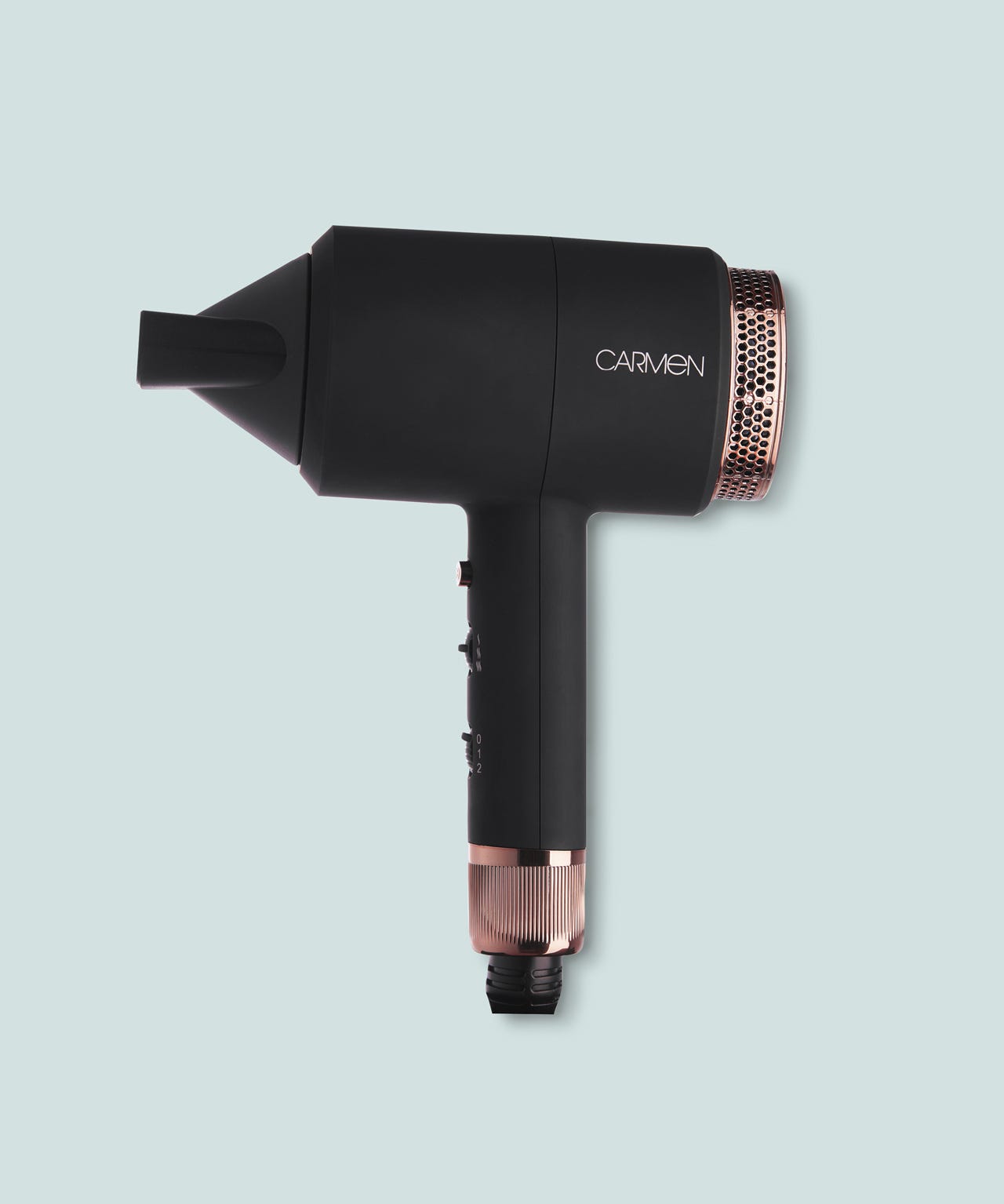This 1800W hairdryer from haircare experts, Carmen, is lightweight so it's easier to use. In a stylish modern design, with two speed settings, three heat settings and concentrator nozzle for a smooth and professional finish. Comes with removable filter for easy cleaning.