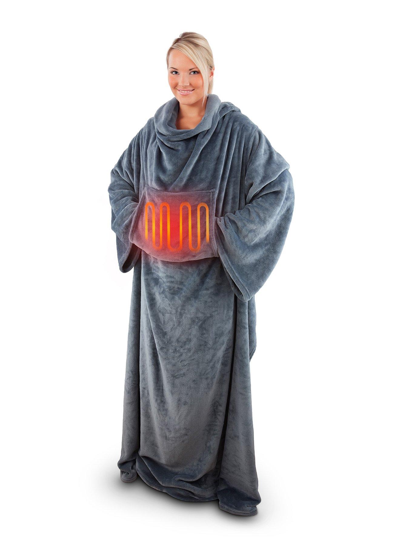 Carmen Wearable Blanket With Keep Warm Heated Front Pocket - Grey Carmen Wearable Blanket With Keep Warm Heated Front Pocket This Carmen Core Fleece Luxury Wearable Blanket With Heated Pocket Is Made With 260Gsm Ultra-Warm Flannel Fleece, Making It Perfect For Snuggling Up On The Sofa On A Cold Evening. Its Long-Sleeved Design Keeps Your Body Warm And Your Hands Free To Grab Your Favourite Drinks And Snacks. Simple And Easy To Use Remote Control With Four Heat Settings Allows Total Control Over The Warmth Of Your Font Pocket , Providing The Perfect Temperature For All Your Needs. The Detachable Controller Lets You Control The Temperature And Then It Can Be Removed When The Blanket Needs Washing. Includes Overheat Protection For Added Safety And Peace Of Mind. Made From 260Gsm Flannel Fleece A Great Energy Saver, This Ultra-Warm And Cosy Material Is Perfect For Snuggling Up On The Sofa On Those Cold Winter Nights. Long Sleeved Design Keep Your Body Warm And Your Hands Free To Grab Your Favourite Drinks And Snacks. 4 X Heat Settings Simple And Easy To Use Remote Control With Four Heat Settings Allows Total Control Over The Warmth Of Your Throw, Providing The Perfect Temperature For All Your Needs. 90 Min Automatic Timer Set A Timer For The Wearable Blanket To Turn Off When It Suits You, Letting You Safely Drift Off To Sleep. 1 X Detachable Controller Set The Ideal Temperature At The Touch Of A Button And Then Easily Detach The Controller When Cleaning It In The Washing Machine. Depth: 155 Cm Height: 1 Cm Material Content: Flannel Fleece 260Gsm Width: 183 Cm Design Type: Plain