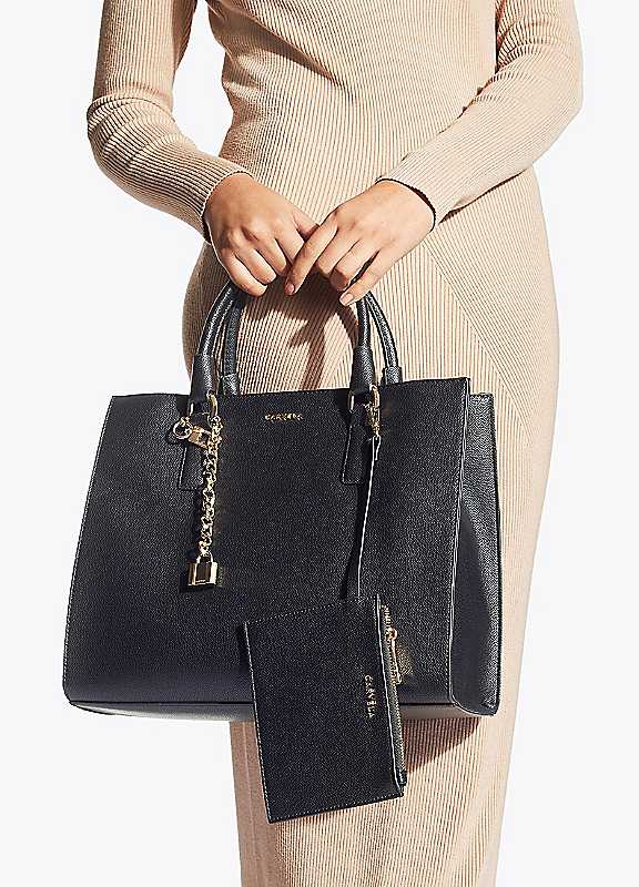 The latte bag arrives in black with two top handles or optional cross body strap. There is a branded gold metal lock charm as well as optional purse on the front.The interior is fastened by zipSyntheticSize approx. 28H x 35L x 10.5D cmStrap drop cross body: 132 cmTop handle drop: 36 cm