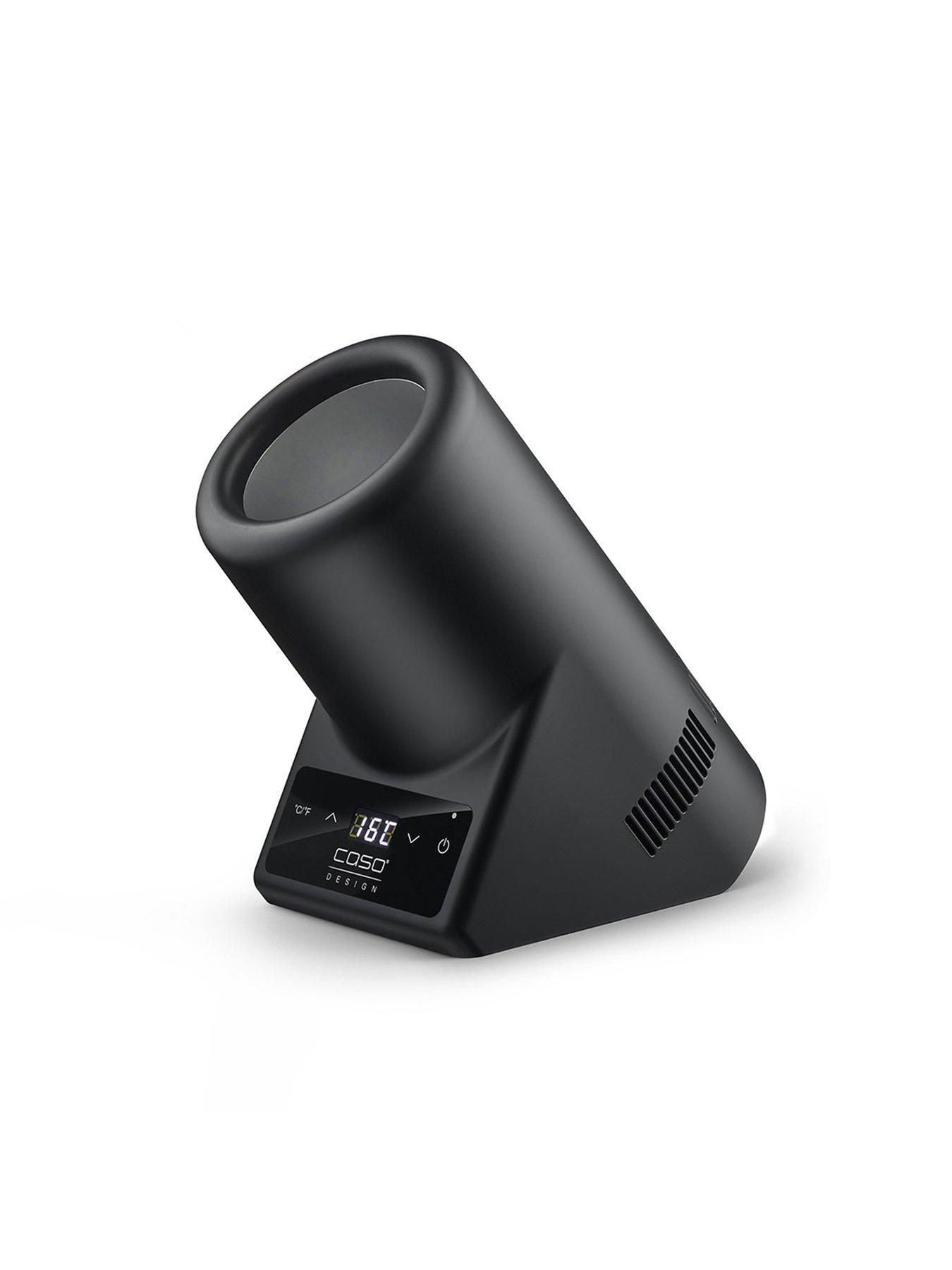 CASO Design VinoCase Tabletop Wine Cooler - keeps your wine at the perfect temperature for maximum enjoyment. The CASO Design VinoCase is a modern table-top wine cooler designed to maintain the temperature of chilled bottles of red or white wine, champagne, sparkling wine and even soft drinks.The temperature is electronically adjustable from 5 to 18°C in 1°C increments, with a simple LED display and sensor touch controls for ultimate ease of use. The CASO Design VinoCase Wine Cooler'squiet operation and high-quality, elegant matt black housing make a perfect statement for your table or kitchencountertop. Simply plug in and go - perfect for getting the best from your wine, as well ashosting dinner parties with friends and family. It can accommodate bottles with a diameter up to 9cm whilst still maintaining a compact design for space-saving storage. Depth: 25 CM Height: 27 CM Width: 14 CM Maintains the temperature of a chilled bottle of wine or champagne Perfect for white wine bottles with a diameter of 9cm or less Adjust the temperature from 5 degrees to 18 degress in 1 degree increments LED temperature display with practical sensor touch controls Compact size to ensure easily fits on any sideboard or table without taking up too much space Quiet operation, producing only 28dB of noise