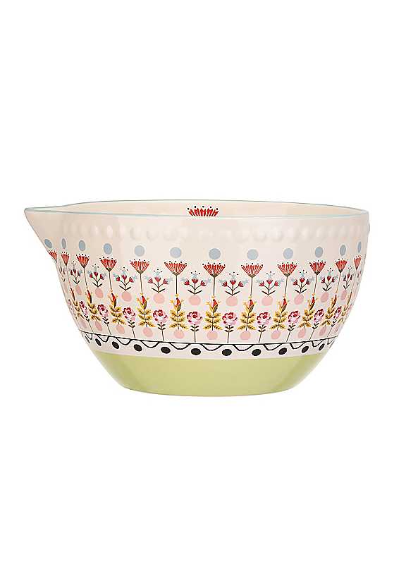 Share some home-baked joy with our Painted Table Ceramic Mixing Bowl. Lovingly designed with an embossed ceramic detail and our classic floral finishes. This bowl is 23cm and features a convenient pouring spout and generous capacity.Before first use, wash in warm soapy water & dry thoroughlyMicrowave & dishwasher safeStonewareDimensions approx. 25 x 23.5 x 13 cm