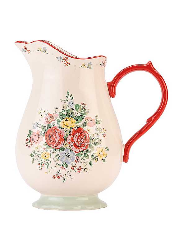 A true multi-functional gem, this classic Cath Kidston pitcher jug is perfect for serving drinks or displaying fresh flowers. Featuring a vibrant red handle for added contrast, the archive Hampstead Rose print is framed with nostalgic trims and delicate floral details. This beautifully crafted stoneware piece blends archival inspiration with contemporary boldness, making it a statement addition to any home. Dishwasher safe.Wash in warm soapy waterStonewareDimensions approx. 22H x 16W x 22D cm
