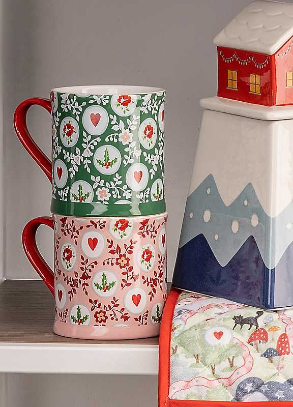 Gift a touch of Christmas magic with our Holly Spots Mollie Mugs set. Featuring a Christmas holly decal on the inner rims, this set includes two contrasting coloured mugs in pink and green, elegantly boxed for the perfect festive present. Dishwasher safe for easy cleaning.StonewareDimensions approx. 12.4 x 8.6 x 9 cm | mugs for gifts, pottery mugs, coffee mug sets, christmas coffee mugs, couple mugs, cool mugs, cute coffee mugs, cute mugs, hot chocolate mugs, floral mugs