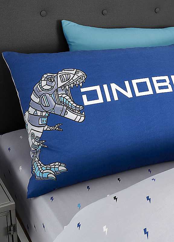 Catherine Lansfield is renowned for style and quality - designed and developed in Great Britain. Co-ordinate this cool fitted sheet to your favourite duvet set featuring cool white, blue and black lightning bolts on a grey base. Ethically sourced overseas and made to strict quality and human-ecological safety standards, in accordance with STANDARD 100 by OEKO-TEX ®. Requires minimal ironing. Search 'Catherine Lansfield Dinobot' to see the full collection. Catherine Lansfield Fitted Sheet Features: Washable 52% Polyester, 48% Cotton Box depth: 25 cm (10 in)