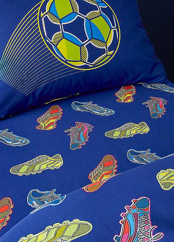 Your little one can dream of scoring the winning goal every night with this goal-getter football sheet. Designed for young football fans, this bedding fitted bed sheet is a dream come true with its vibrant football pattern. Created from easy-care recycled polyester and soft responsibly sourced cotton, perfectly blended for everyday use. Catherine Lansfield is renowned for style and quality - designed and developed in Great Britain. Made to quality and human-ecological safety standards, in accordance with MADE IN GREEN by OEKO-TEX®.Easy Care: Suitable for machine washing and tumble dryingResponsible: Recycled polyester blended with responsibly sourced cottonDurability: Made to withstand regular use and washingFully Elasticated: Creating a secure hold around your mattress25cm Depth: Suitable for a standard depth mattressesTumble dry safeWash before use. Machine wash at 40 degrees52% Polyester, 48% Cotton
