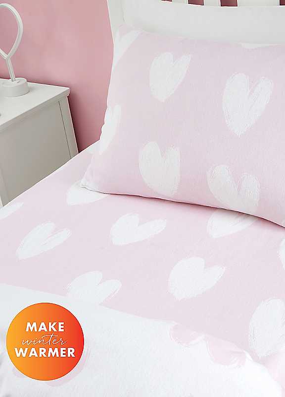 Fall in love with bedtime! This cute brushed cotton hearts design is a sweet symphony of pink and white, sprinkled with love and dreams. Crafted with soft and cosy responsibly sourced brushed Cotton, this bedlinen promises to keep your little one warm and comfortable throughout the night. Catherine Lansfield is renowned for style and quality - designed and developed in Great Britain. Made to quality and human-ecological safety standards, in accordance with MADE IN GREEN by OEKO-TEX®.Brushed Cotton: Soft flannelette offering a cosy and warm feelFully Elasticated: Creating a secure hold around your mattressWarm & Cosy: To make those colder nights extra toastyExtra Deep: A 15cm depth for lighter mattressesTumble dry safeWash before use. Machine wash at 40 degrees100% Brushed Cotton