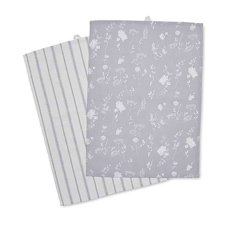 Catherine Lansfield Meadowsweet Floral Grey Tea Towels Pair