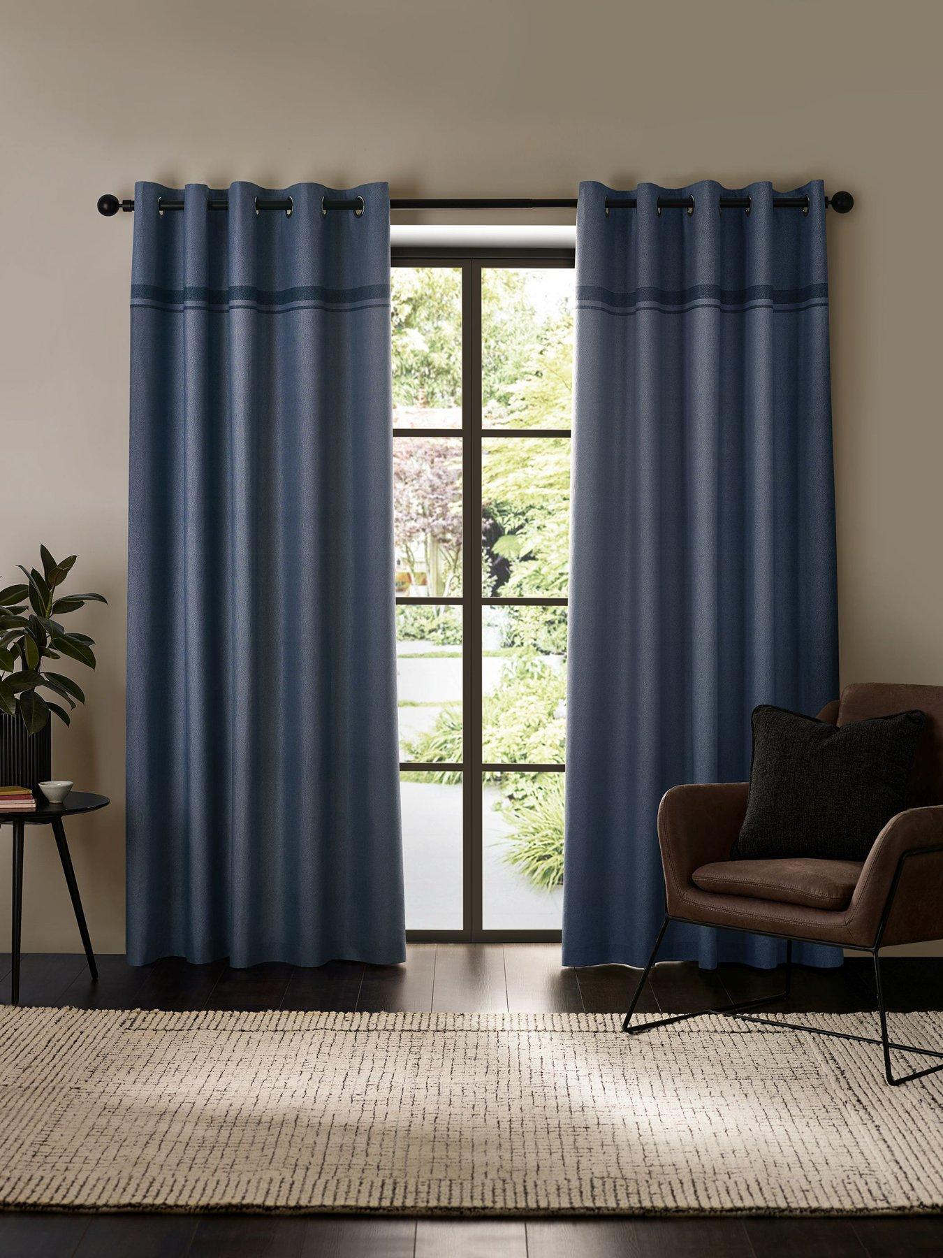 Catherine Lansfield Melville Lined Eyelet Curtains - Blue - Size W168Xd183Cm(W66Xd72Inches)