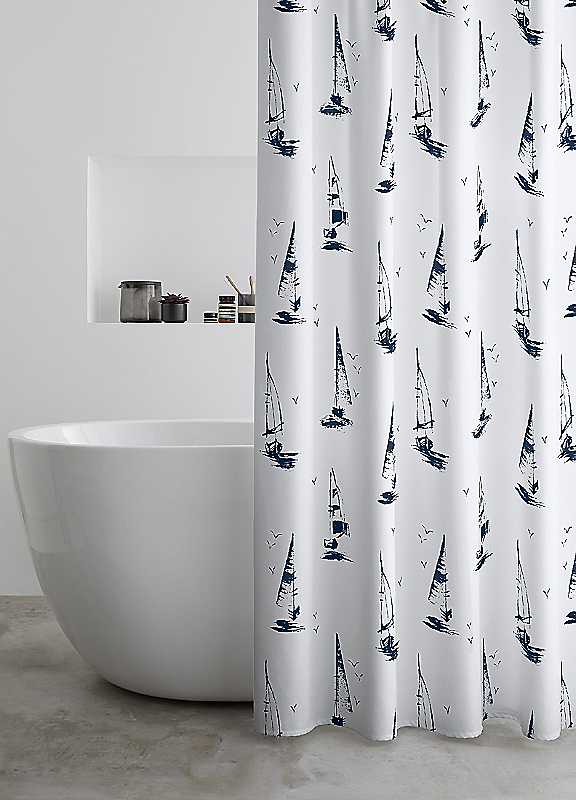 Bring the spirit of the sea into your bathroom with this charming sailing boat design. Inspired by tranquil harbours and ocean breezes, this bedding set captures a relaxed coastal retreat. With the added benefits of durability, water resistant treatment and easy fit eyelet header, you can ensure your bathroom is functional and fashionable.Catherine Lansfield is renowned for style and quality - designed and developed in Great Britain.Privacy: Provide modesty while showeringShower Proof: A barrier to help the product stay dryDurability: Made to withstand regular use & washingPlease note: This product comes without hooks.Machine washableTumble dry & iron on low heat100% PolyesterSize approx. 180 x 180 cm
